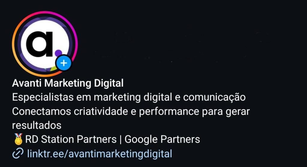 Um bom exemplo é a bio do Instagram, que deve sempre deixar claro qual é o serviço oferecido, além de trazer informações e links relevantes para quem busca por páginas semelhantes à sua. Veja abaixo o exemplo da Avanti: