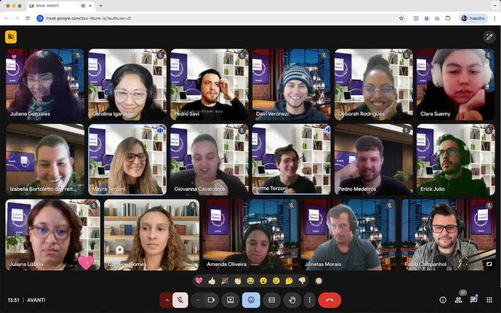 Não é uma obrigação, mas uma proposta genuína de participação. Este ritual semanal reforça a cultura de responsabilidade compartilhada e a certeza de que o trabalho de cada um está conectado ao objetivo maior da agência.